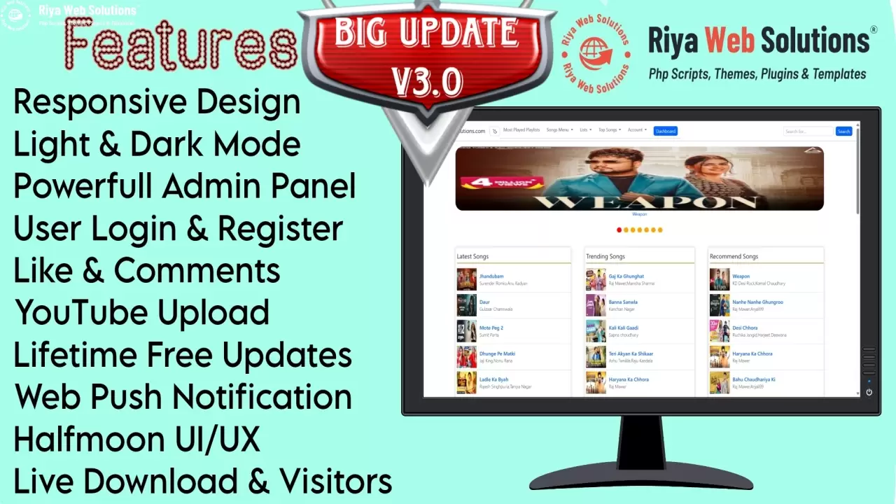 Buy Riya Music PHP Script - Audio Sharing Streaming by raomsyg on Codester and RiyaWebSolutions.Com. Riya PHP Music - Songs Upload & Download Portal Like Mr-jatt, Skyitech PHP Script and Pagalworld.com, Auto Index Mp3 Streaming, Nulled version and free download.