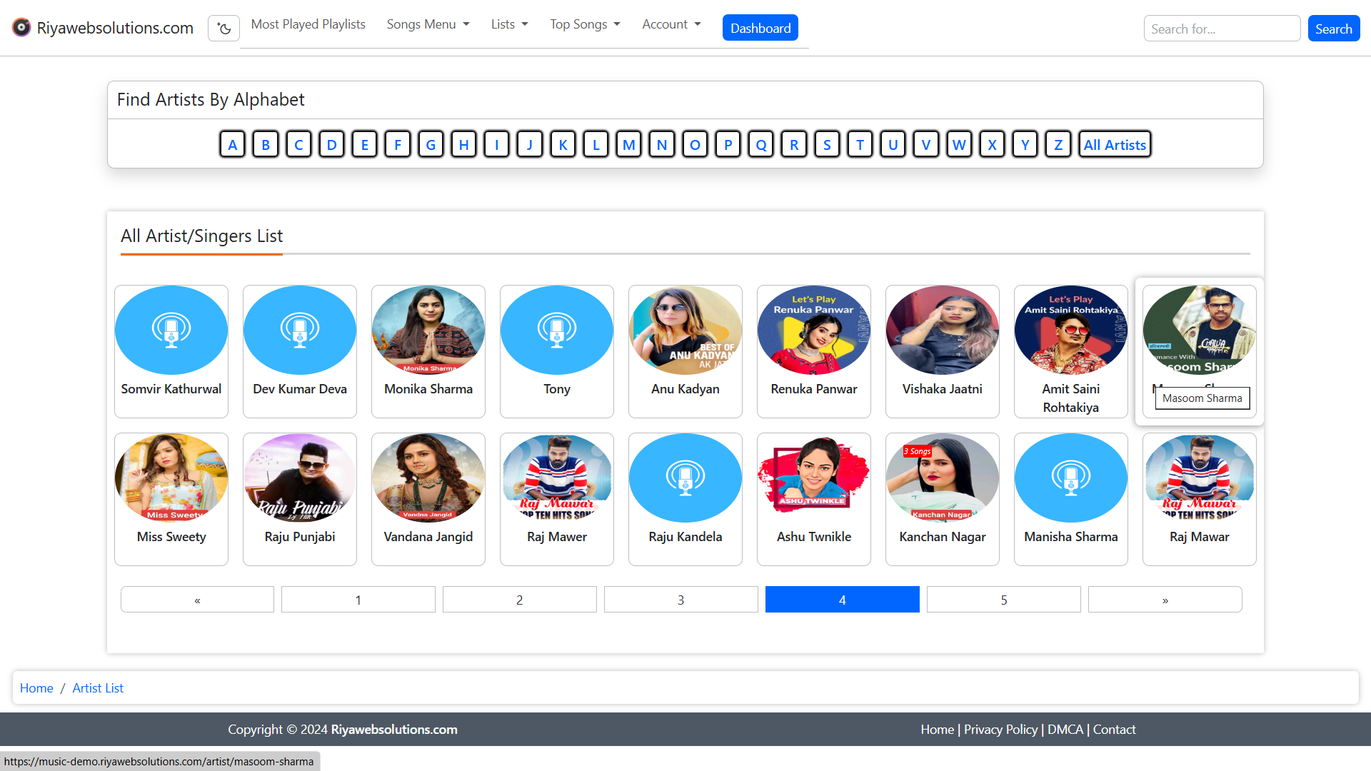 - Artist | Stars | Music |Lyrics | Genre & Users Pages