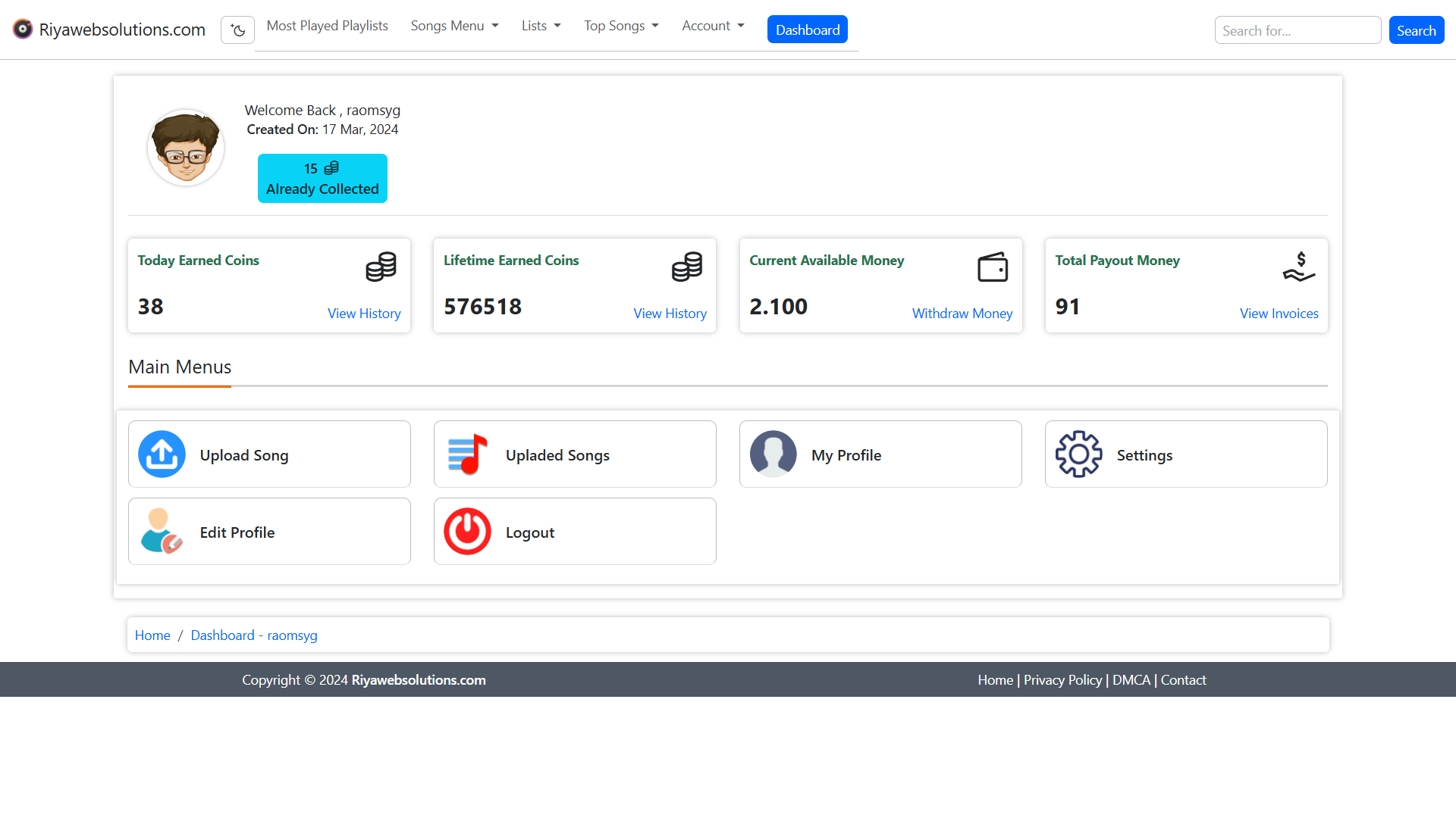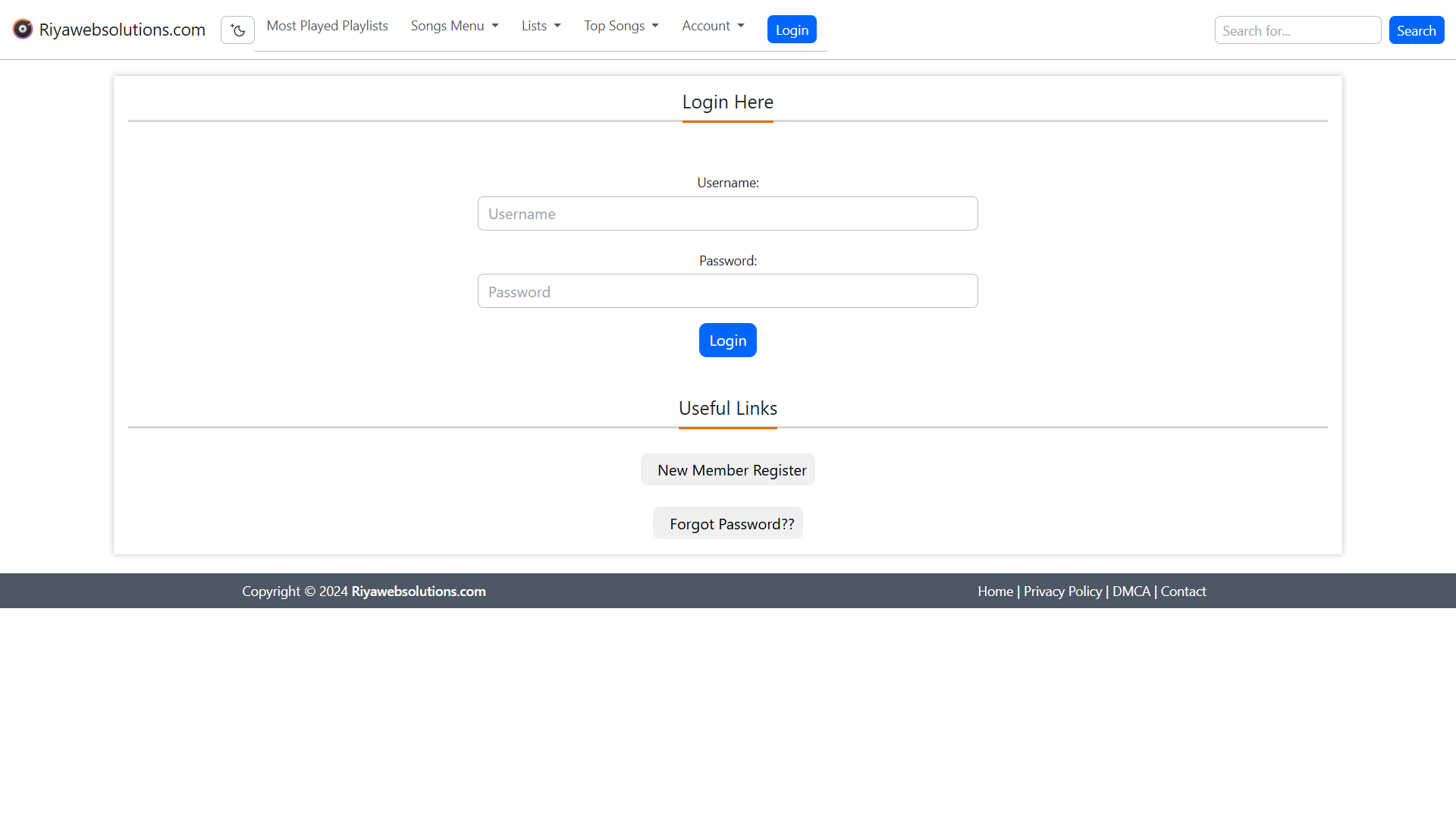 Riya Music is a website developed for free music downloads. This is designed so that anyone can configure it very easily and provides documentation with everything