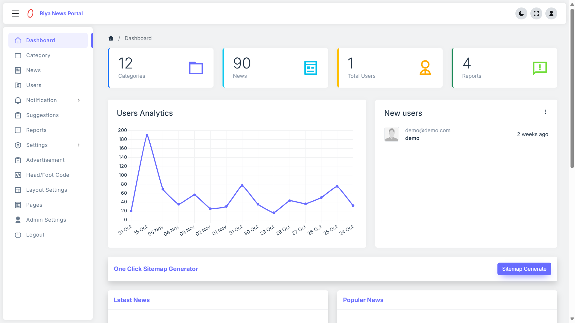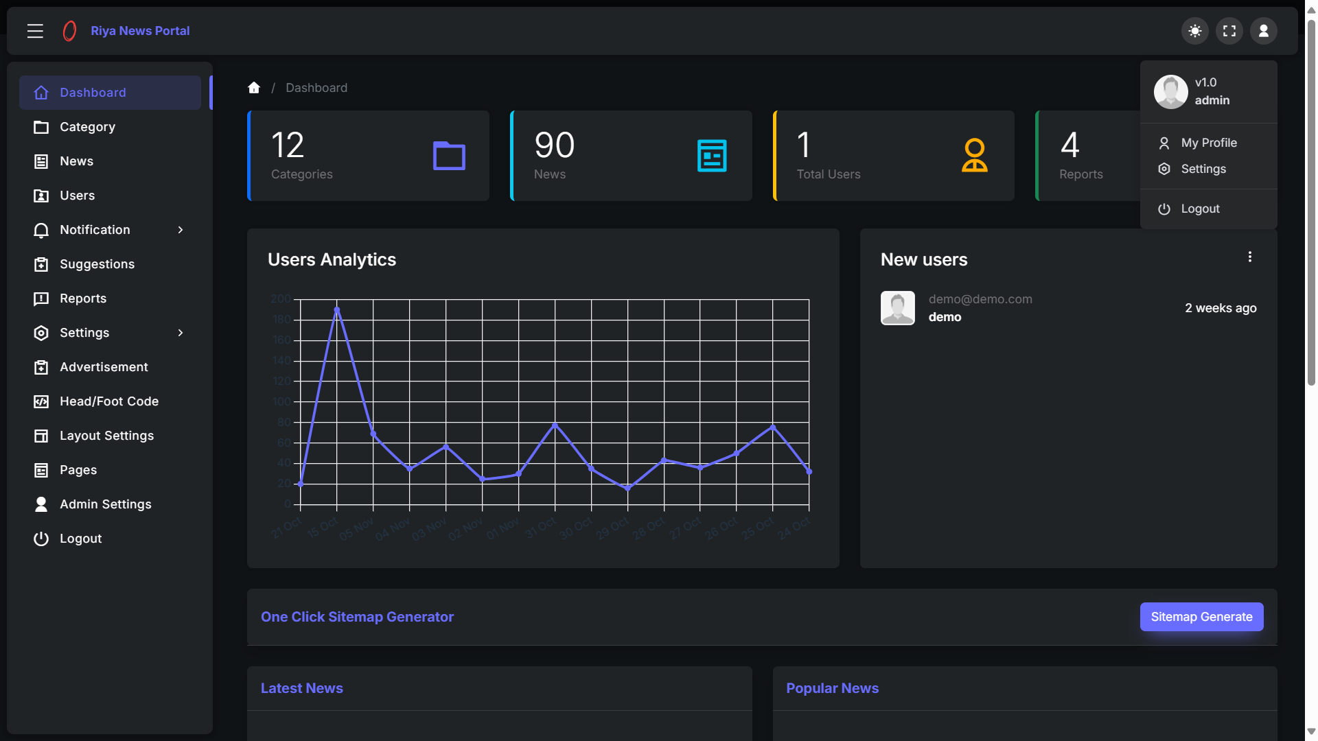 RiyaWebSolutions.Com's Launch first time a beautiful and fully functional news sharing PHP script comes with 2 exclusive templates as Riya News PHP Script is a responsive PHP/Bootstrap frontend and admin dashboard script.