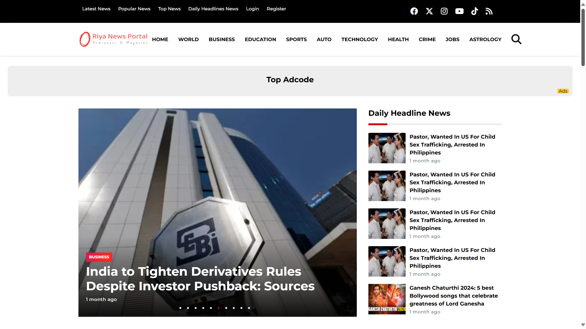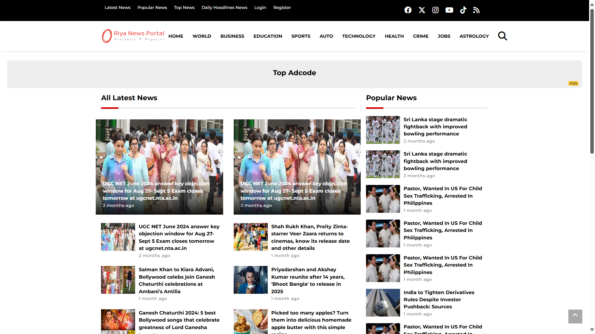 Riya News PHP Script - Newspaper and Magazine Portal with CodeIgniter