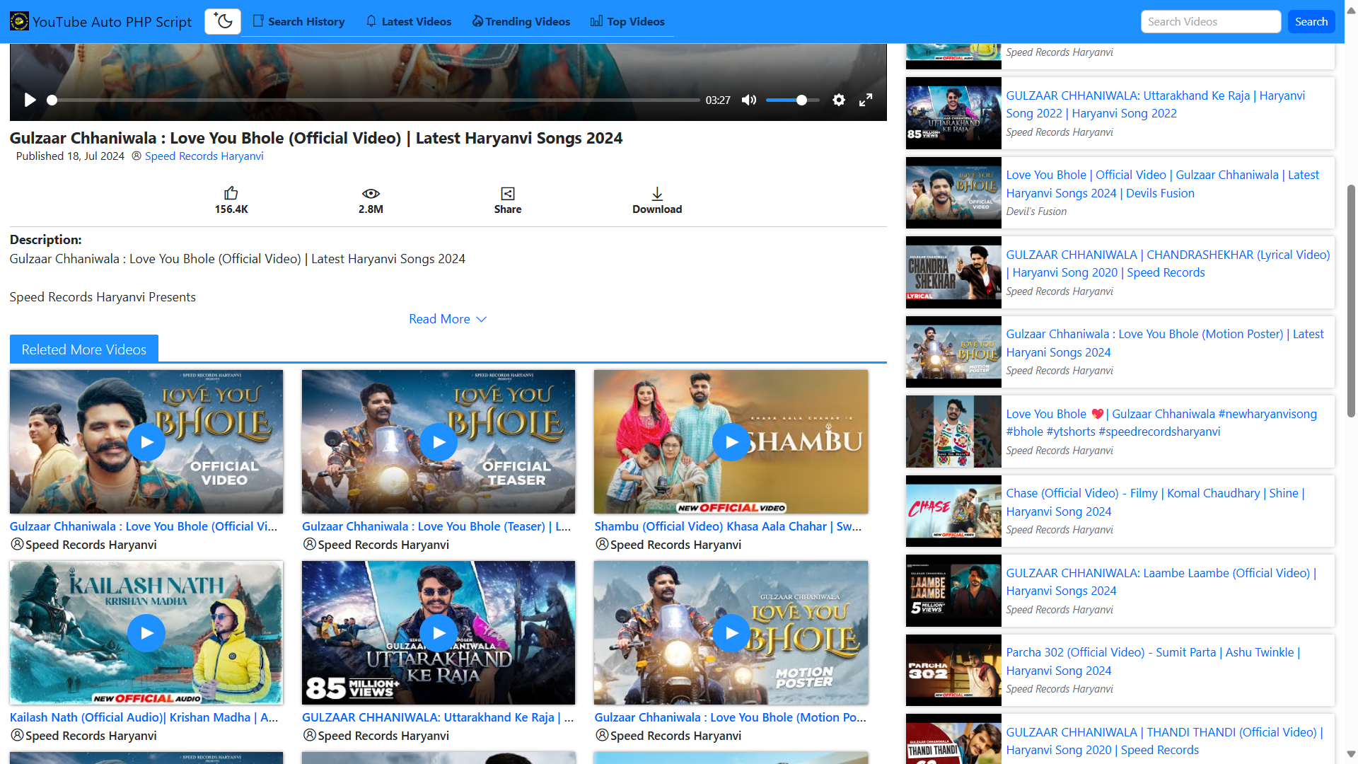 - Tags php script, codeigniter, youtube clone, light and dark theme, autopilot youtube, videos cms, youtube automated, video tube script, riyawebsolutions, music php script, mp3 download site, ,